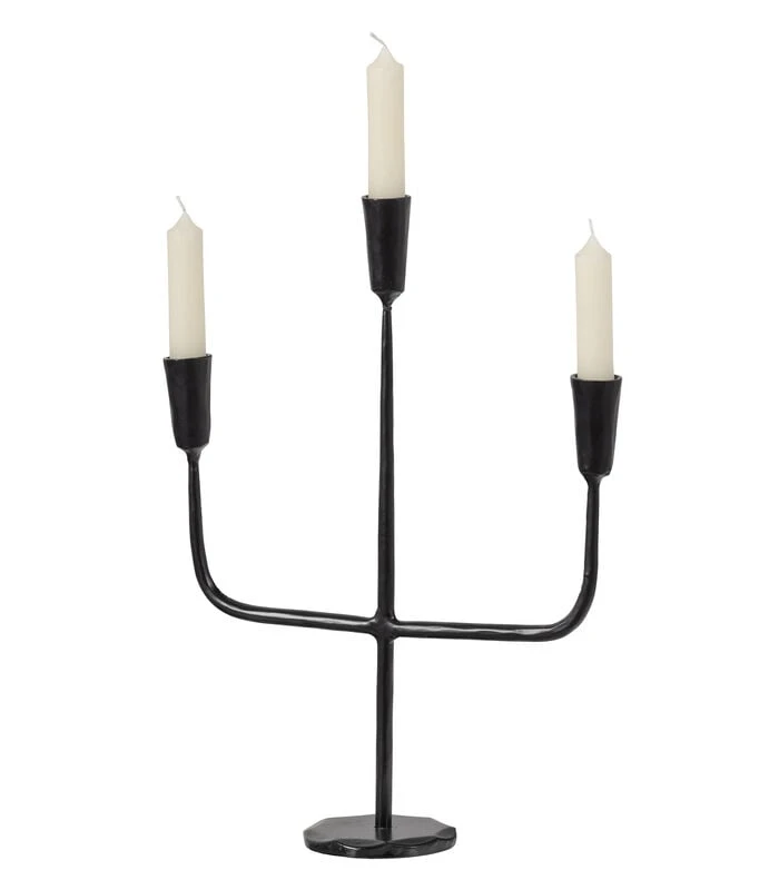 Deze elegante kandelaar komt uit de collectie van het Nederlandse interieurlabel WOOOD. De Sean kandelaar biedt ruimte voor drie kaarsen van ø 2 cm. Het metalen frame is ø 1 cm. De kaars in het midden staat op 40 cm hoog, de twee buitenste kaarsen staan op 29 cm hoogte vanaf het oppervlakte waar Sean op staat. De voet van Sean heeft een hoogte van 1 cm en een doorsnede van 10 cm. Plaats voor het beschermen van de kandelaar en de oppervlakte viltglijders aan de onderzijde. Dit voorkomt krassen of strepen wanneer Sean verschoven wordt.