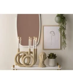 PRESENT TIME Kandelaar Rings – Polyresin – Zandbruin – 38×14,5x30cm