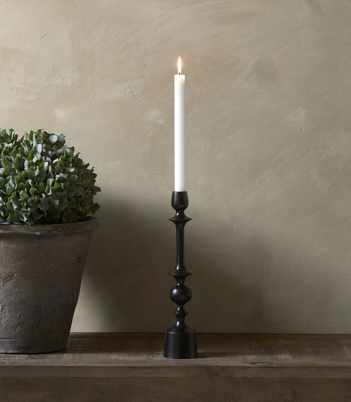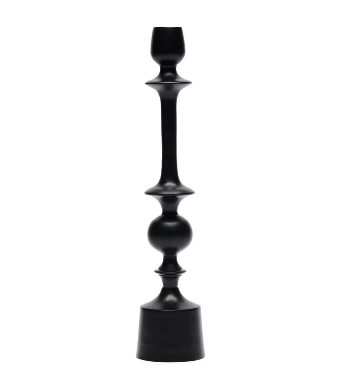 Met een knipoog naar klassieke kaarsenkandelaars is dit de RM Harley. Deze kaarsenhouder is geschikt voor een dinerkaars en valt op door het gebruik van organische vormen en de matte, zwarte finish. Hij is gemaakt van massief aluminium, hierdoor staat hij heel stevig.