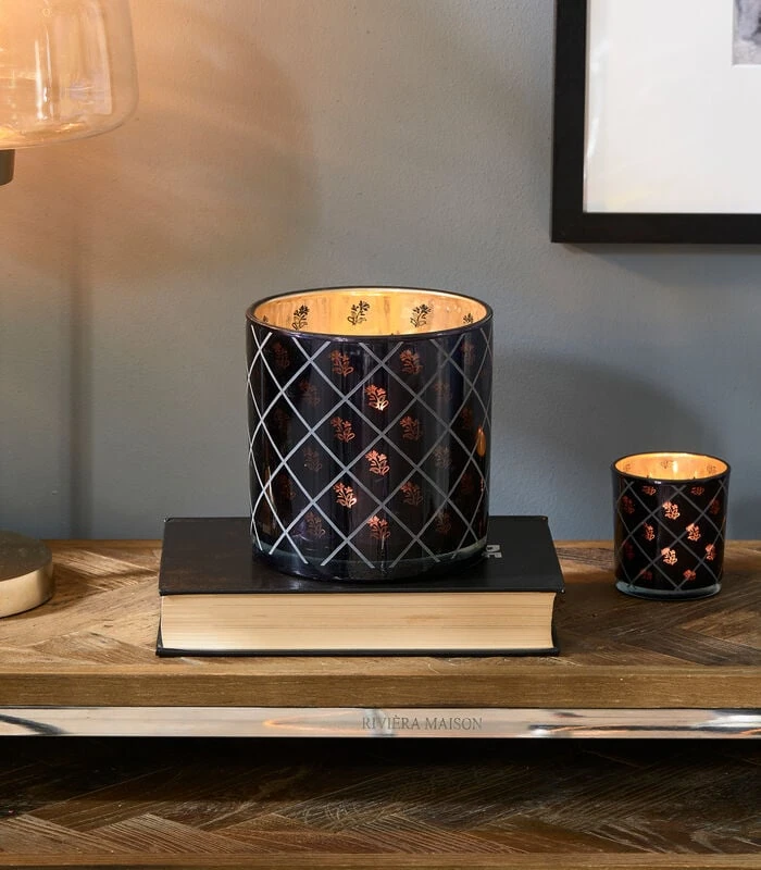 De RM Flower Hurricane is een klein windlicht voor een stompkaars of een (groot) waxinelicht. De kaarsenhouder is gemaakt van glas en heeft aan de buitenzijde een gegraveerd, ruitvormig patroon. Aan de binnenzijde is een bloemenpatroon te zien. Via de bloemen fonkelt het kaarslicht sfeervol naar buiten.